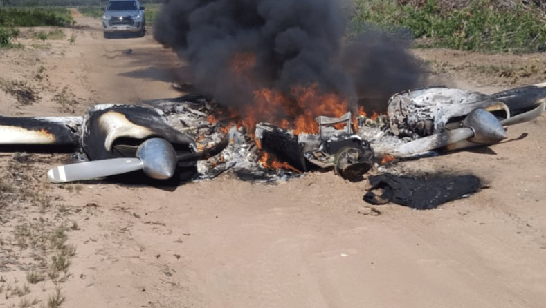 Polícia apontou indícios de que o piloto fez um pouso forçado na fazenda e ateou fogo na aeronave, porque encontraram