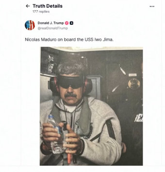 Mais cedo, o presidente Donald Trump afirmou que o futuro político da Venezuela ainda será definido e disse que o país ficará sob controle de