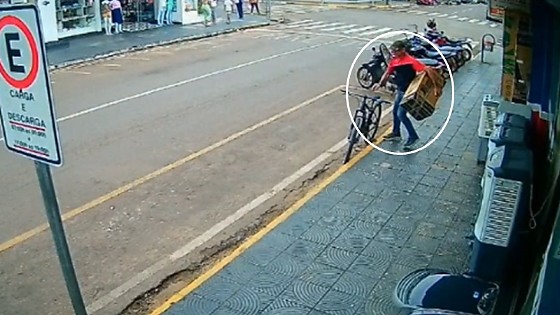 O ladrão pegou o equipamento e foi embora de bicicleta. A Polícia Civil de Mato Grosso, por meio da Delegacia Especializada de Roubos e