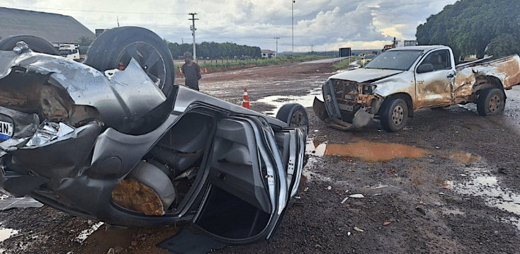 O acidente envolvendo um Honda Civic cinza e uma Toyota Hilux foi, esta tarde, no quilômetro 783 da rodovia federal, entre os municípios de Sinop