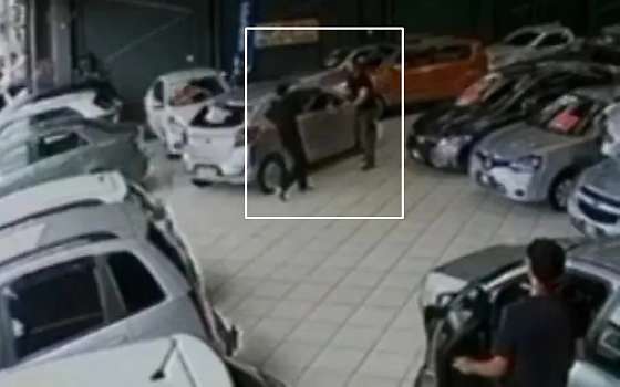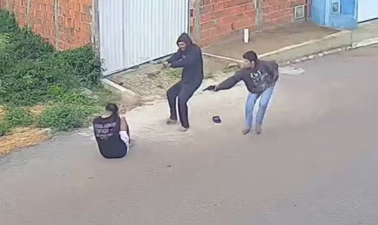 Câmeras de segurança registraram o momento em que dois homens tentam matar a vítima; suspeitos fugiram e caso é investigado pela polícia. Uma tentativa