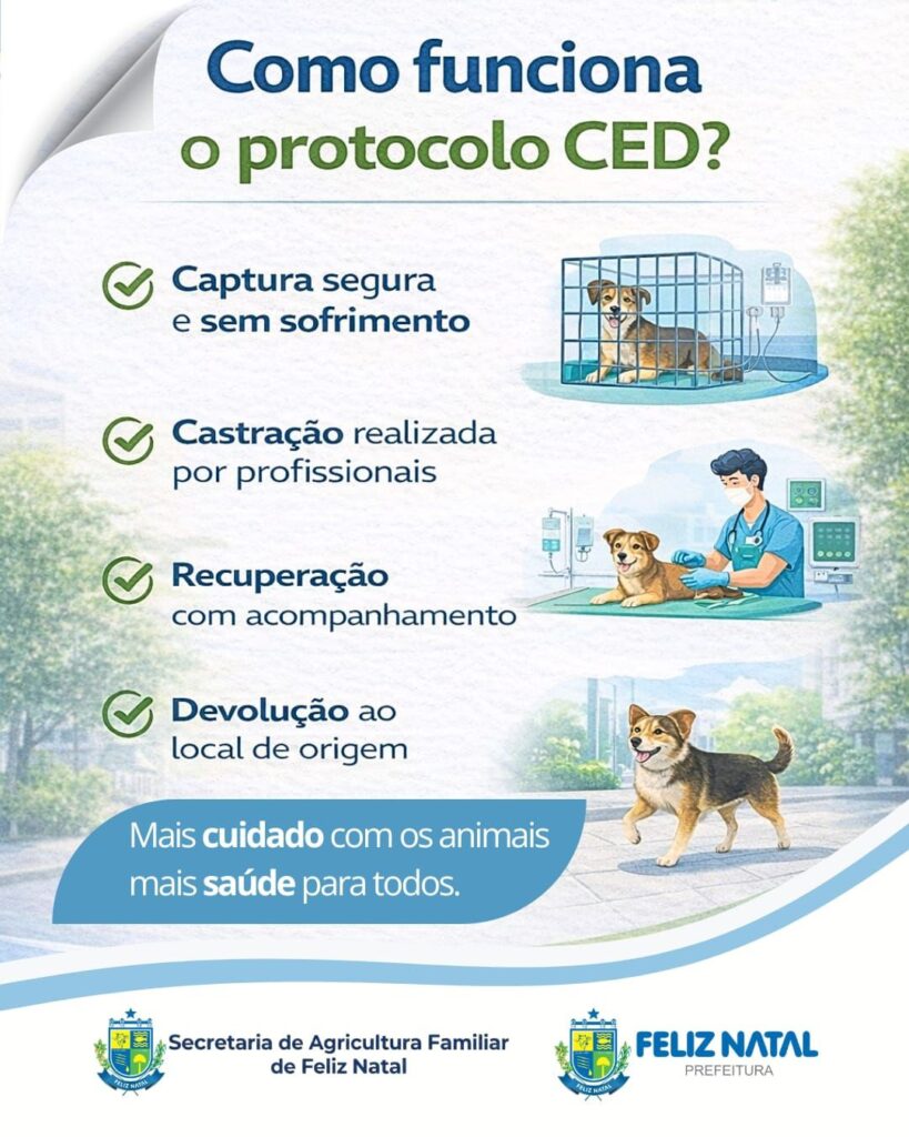 A Prefeitura de Feliz Natal deu um passo importante na promoção da saúde pública e do bem-estar animal com a criação do protocolo CED — Captura, Esterilização e Devolução.