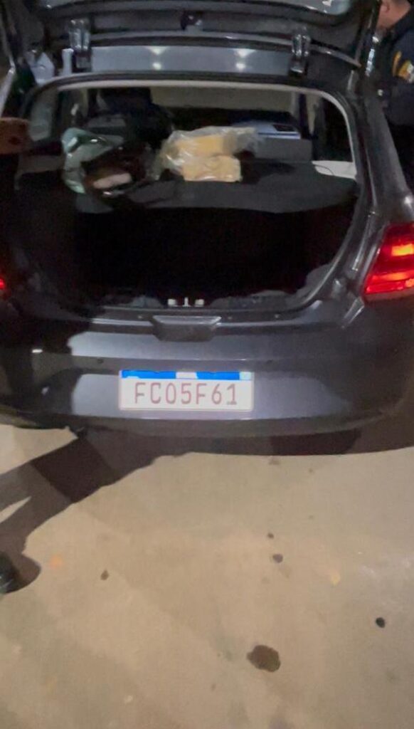 Durante a abordagem, o condutor, identificado pelas iniciais D.S.S., confessou que não possuía Carteira Nacional de Habilitação (CNH) e que vinha de Cuiabá. Questionado sobre o veículo, informou que teria alugado o carro de uma pessoa física.