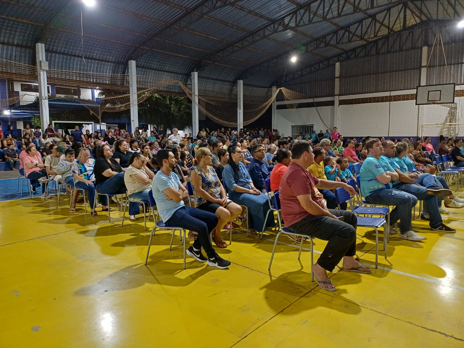 Imagem da Assembleia Geral com a participação de pais, responsáveis, equipe gestora e comunidade escolar