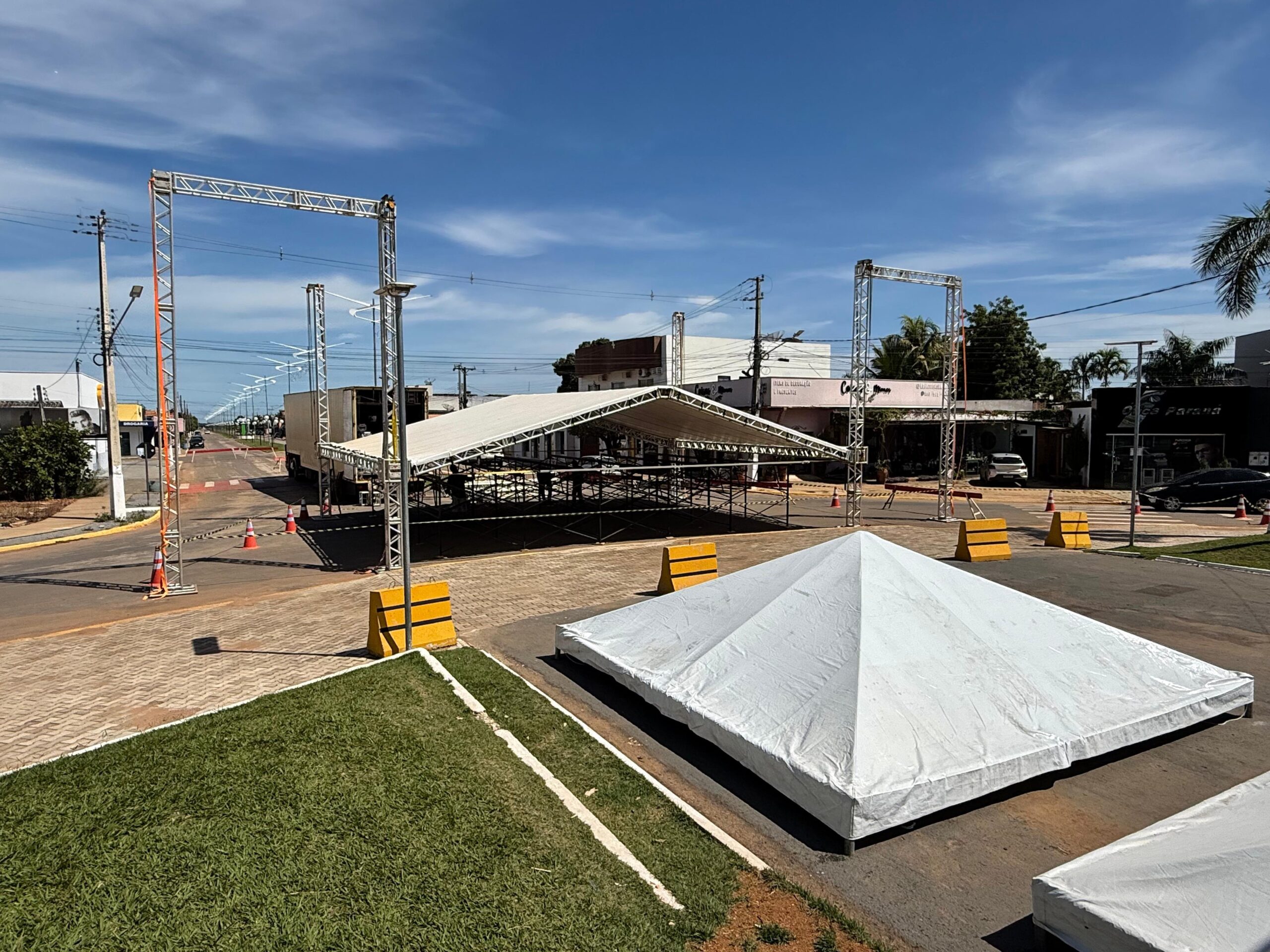 O palco principal será o centro das atenções, integrado a uma ampla área coberta de aproximadamente 500 metros quadrados, pensada para garantir conforto e segurança ao público. A estrutura contará com tendas de 10 x 10 metros, além de outras menores, estrategicamente distribuídas por toda a praça. A medida assegura abrigo para todos em caso de chuva, sem comprometer o andamento da programação.