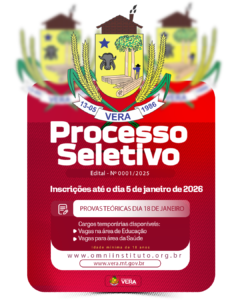A Prefeitura de Vera reforça que esta segunda-feira (05) é o último dia para os interessados se inscreverem nos processos seletivos simplificados que visam o preenchimento de vagas em diferentes áreas da administração municipal.