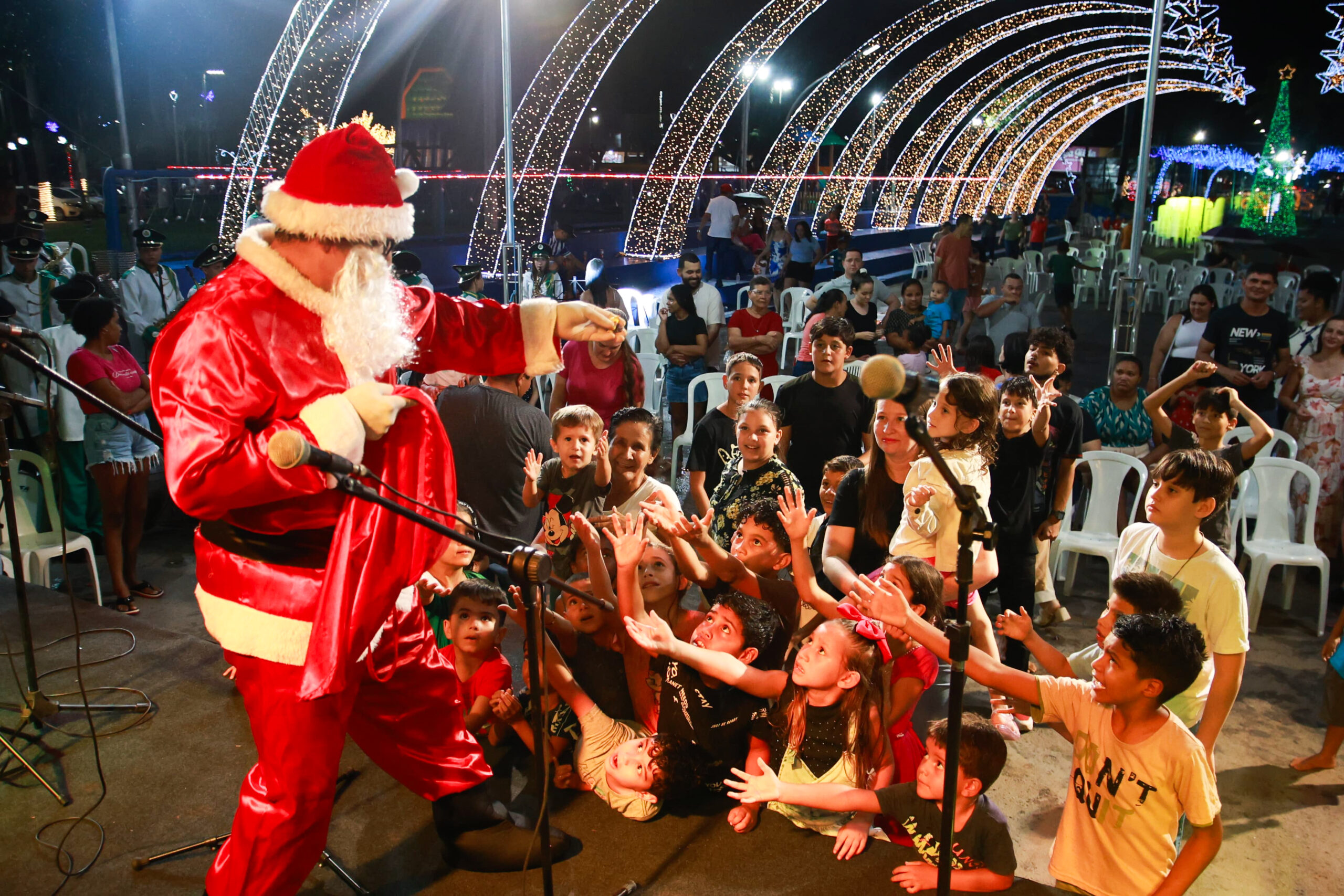 A abertura foi marcada pelo tradicional desfile em carro aberto, que saiu da Prefeitura em direção à praça, levando o Papai Noel e arrastando pelas ruas um grande número de crianças e moradores que acompanharam a carreata do Bom Velhinho. A comitiva contou com a presença da vice-prefeita Dra. Ana, secretários municipais e vereadores, reforçando o caráter institucional e comunitário da celebração.