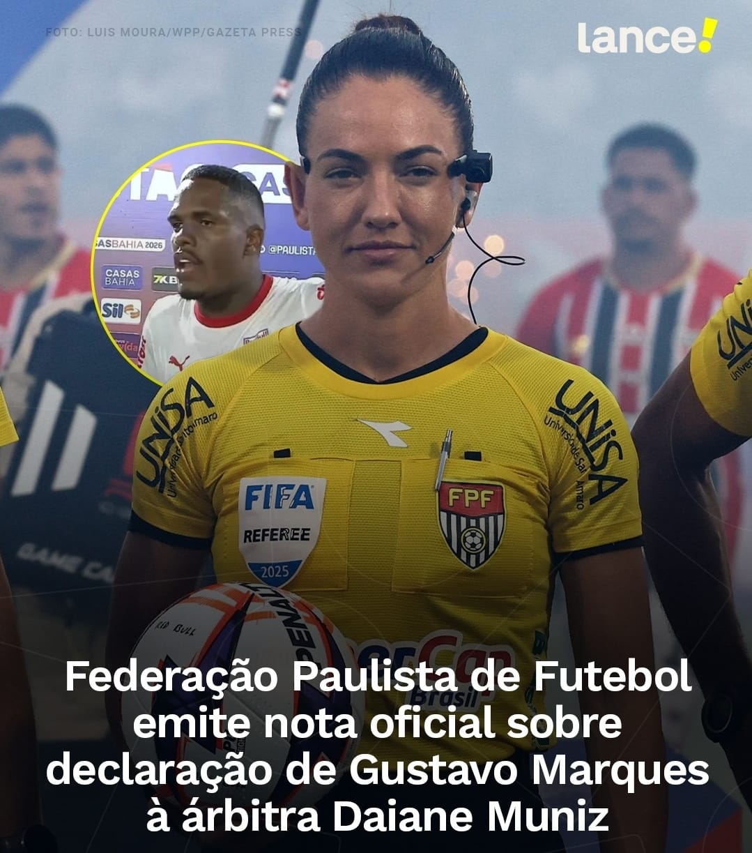 Ao fim da partida, ainda no campo, o jogador deu uma entrevista criticando a Federação Paulista de Futebol por ter colocado uma mulher para apitar a partida. O Bragantino perdeu para o São Paulo por 2 a 1, em casa, e foi eliminado do Campeonato Paulista. Gustavo Marques foi o autor do gol do Bragantino.