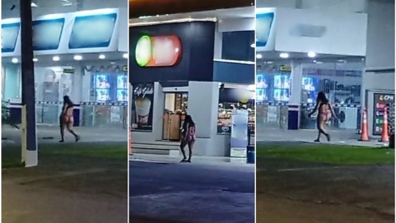 Um vídeo que circula nas redes sociais desde a noite deste sábado (20) mostra uma mulher vestindo apenas roupas íntimas circulando pela Av. das Araras, Alto da Colina, em Nova Mutum/MT. As imagens registram o momento em que ela atravessa a via e passa pelo interior de um posto de combustível, enquanto o local estava em funcionamento, com frentistas trabalhando e som ambiente ligado. (Veja o Vídeo abaixo).