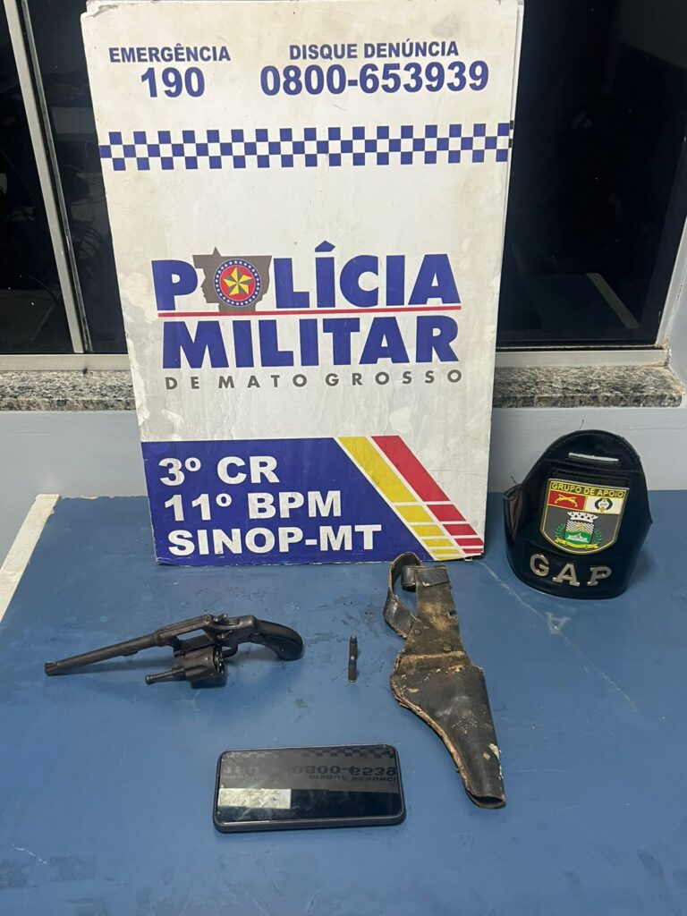 De acordo com as informações, durante a intervenção policial, os militares conseguiram localizar o suspeito portando uma arma de fogo. Diante da situação, foi dada voz de prisão ao indivíduo, que foi detido ainda no local.