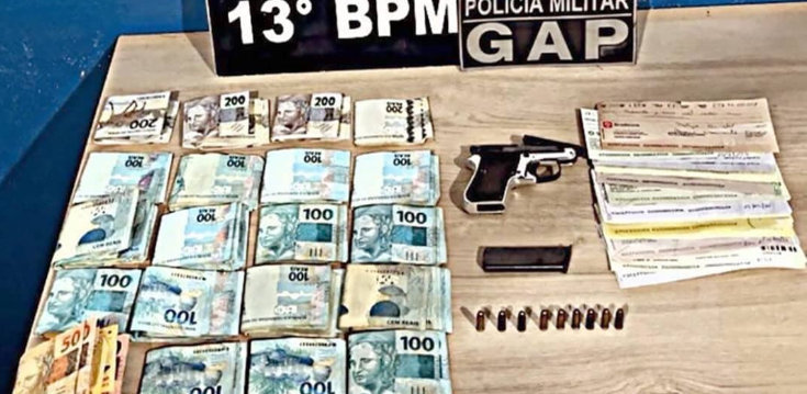 Foi solicitado que desembarcasse do automóvel e, durante buscas, os policiais encontraram a arma municiada num estojo. Haviam ainda diversas cédulas de dinheiro e cheques de procedência não informada.