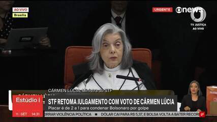 Após o voto de Cármen, o placar na Primeira Turma do STF é de 3 a 1 pela condenação de Bolsonaro por todos os crimes.